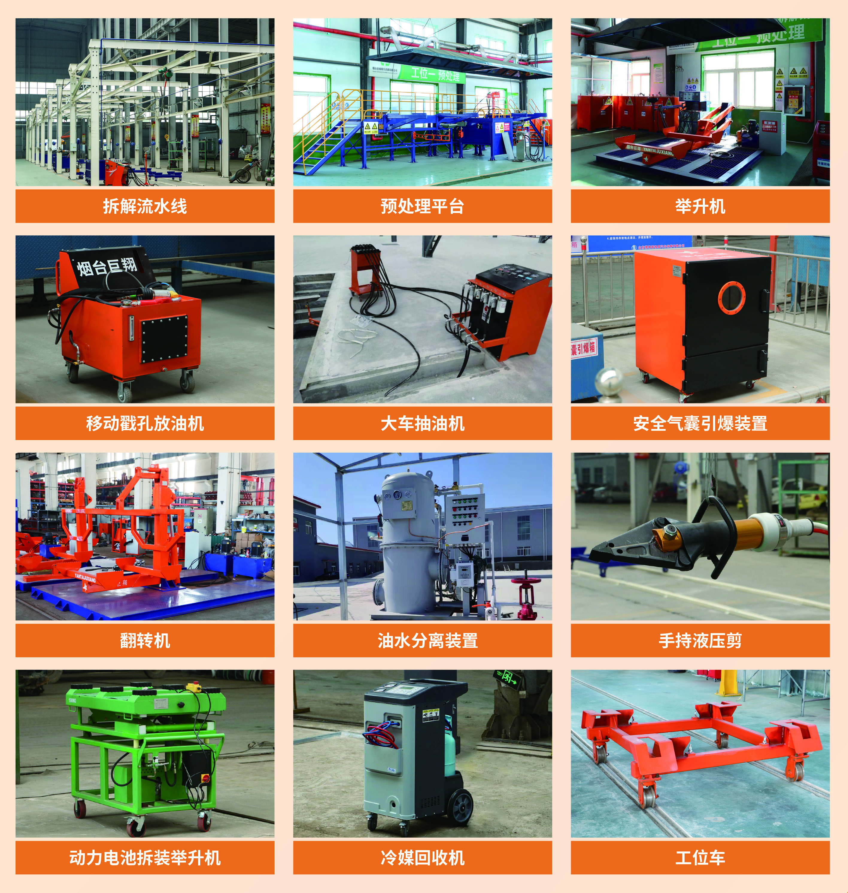 煙(yān)台巨翔機(jī)械作(zuò)為(wèi)一(yī)家(jiā)老(lǎo)牌報(bào)廢機(jī)動車(chē)回收拆解行(xíng)業(yè)綜合服務商,在報(bào )廢汽車(chē)拆解線方面具有(yǒu)豐富的(de)業(yè)內(nèi)軟、硬件(jiàn)資源以及積累多(duō)年(nián)的(de)工(gōng)程經驗,在再生(shēn•g)資源領域,巨翔機(jī)械已經協助黑(hēi)龍江、內(nèi)蒙古、新疆、山(shān)東(dōng)、山&(shān)西(xī)、陝西(xī)、安徽、河(hé)南(nán)、河(hé)北(běi)、江蘇、福建、雲南(nán)等省份200多(duō)家(jiā)<企業(yè)完成了(le)報(bào)廢汽車(chē)拆解線的(de)規劃建設與升級工(gōng)程,全部符合國(guó)家§(jiā)規範和(hé)商務主管部門(mén)要(yào)求,獲得(de)了(le)用(yòng)戶的(de)一Ω(yī)緻好(hǎo)評,希望我們的(de)技(jì)術(shù)經驗能(néng)夠為(wèi)報(bào)廢機(jī)動車(chē)回收拆解行(xíng)業(yè)帶來(lái)多(duō)方面的(de)啓示和(hé)幫助。