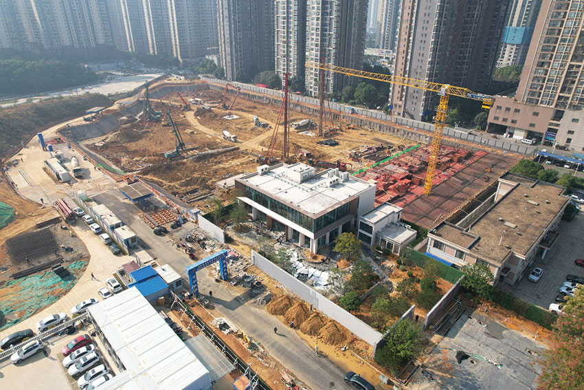 長(cháng)沙周南(nán)學府項目位于長(cháng)沙市(shì)開(kāi)福區(qū),屬于高(gāo)層住宅社±區(qū),前期基坑開(kāi)挖完畢後,随即開(kāi)始樁基施工(gōng),長(cháng)沙的(de)地(dì)質結構主要(yào)由π砂礫岩、粉砂岩、砂岩、礫岩以及闆岩組成,上(shàng)層則是(shì)網紋紅(hóng)土(tǔ)。周南(nán)學府項目工(gōng)地(dì)亦是(shì)如(rú)此,基坑♥之下(xià),約四五米紅(hóng)土(tǔ)層過後,就(jiù)是(shì)由紅(hóng)土(tǔ)膠結的(de)半風(fēng)化(huà)砂礫岩與闆岩結構。