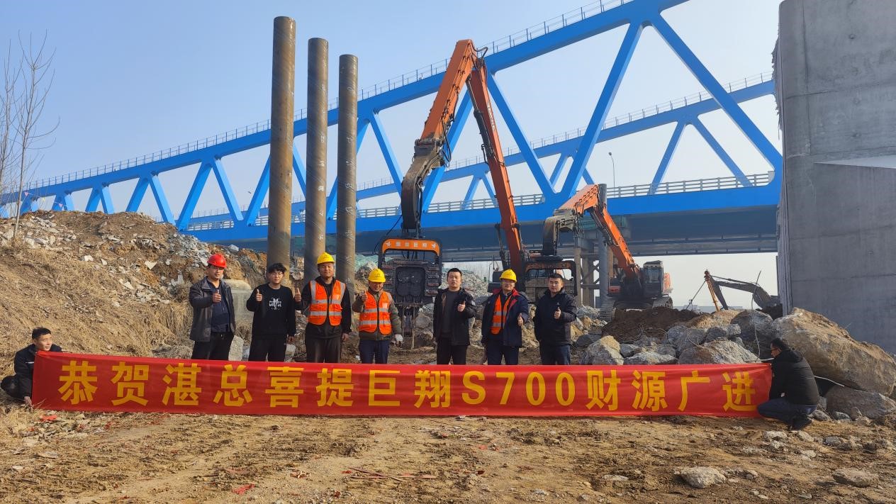 巨翔S系列700打樁機(jī)是(shì)對(duì)巨翔産品“4S”理(lǐ)念(超穩定性 、超大(dà)打擊力、超性價比、超長(cháng)耐久性)的(de)實踐升華。S系列-700打樁機(jī)采用(yò©ng)雙馬達設計(jì),在特殊極限工(gōng)況下(xià)也(yě)能(néng)保證動力澎湃且穩定。S700打樁錘震頻(p✔ín)高(gāo)達2900rpm,激振力80t,高(gāo)頻(pín)有(yǒu)勁。新錘最長(cháng)可(kě)打拔鋼闆樁或筒樁長(cháng)度至24米左右,保證承攬各類工(gōng)程∑項目。S700适配三一(yī)、柳工(gōng)、徐工(gōng)等挖機(jī)品牌50-70噸級挖機(jī),機(jī)錘匹配度極★高(gāo)。