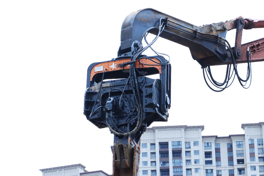 為(wèi)配合工(gōng)程基礎開(kāi)挖,施工(gōng)方采用(yòng)一(yī)台日(rì)立490挖掘機(jī)挂載我公司S650打樁機(jī)進行♦(xíng)鋼闆樁支護作(zuò)業(yè),在碎石比例過半的(de)土(tǔ)壤條件(jiàn)下(xià ),S650打樁機(jī)表現(xiàn)出了(le)超凡的(de)工(gōng)作(zuò)性能(néng),12米樁平均打樁時(shí)間(jiān)控制( zhì)在兩分(fēn)半以內(nèi)。